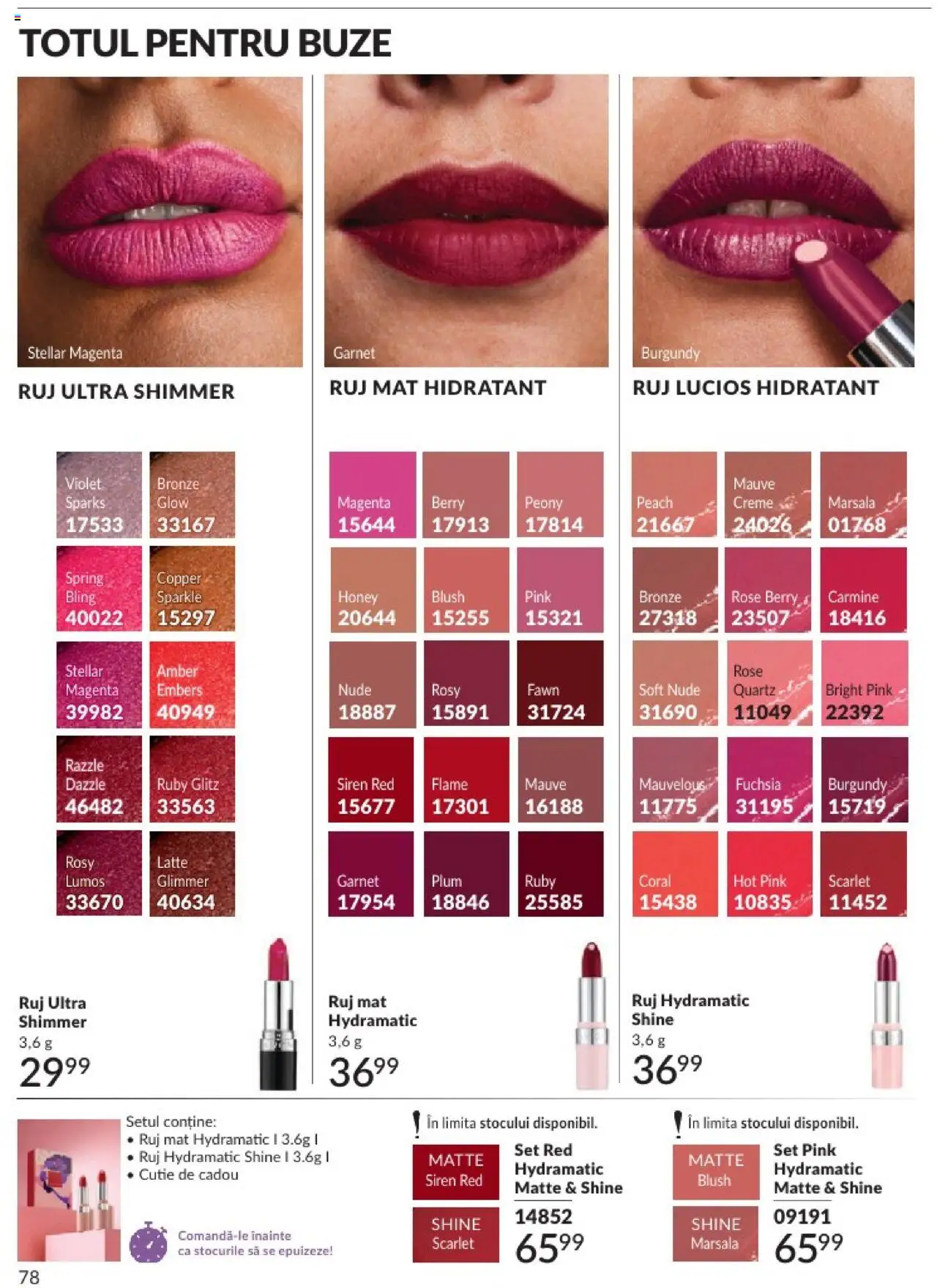 Ofertele din Revista Avon au fost valabile de Duminică, 1 Decembrie 2024 până Marţi, 31 Decembrie 2024, în limita stocului disponibil.