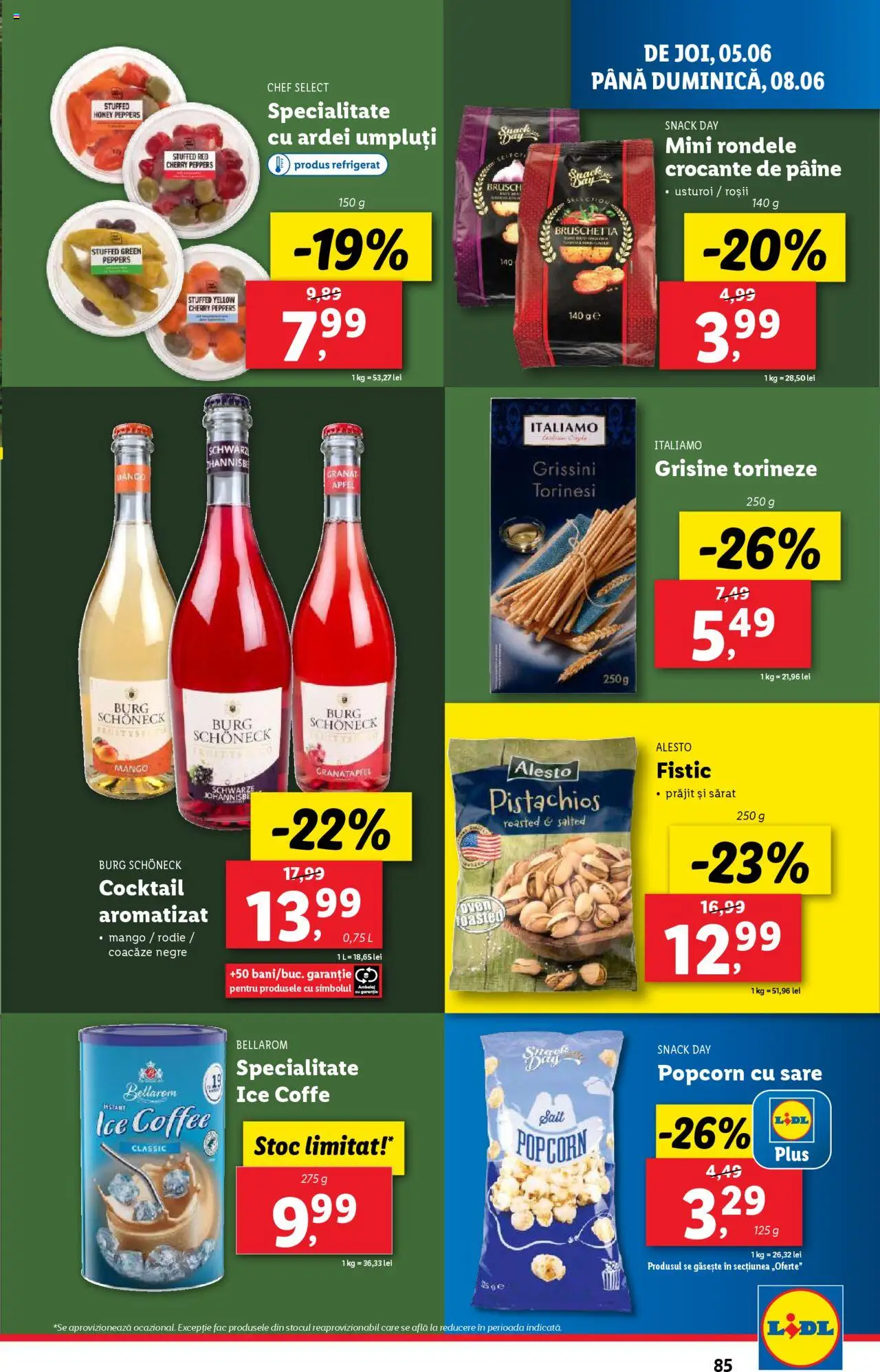 Găsești aici tot ce îți trebuie: brânzeturi, carne, legume, înghețată, ciocolată, vin, produse pentru grill, dar și rochii lejere, tricouri, încălțăminte, saltele, perne, aparate de ras, șampoane, detergenți și multe altele. Este mai mult decât ieftin - este complet, divers și pregătit să transforme fiecare zi într-o oportunitate de economisire. Aruncă o privire în catalog și lasă-te surprins de ofertele Lidl, valabile în limita stocului disponibil!